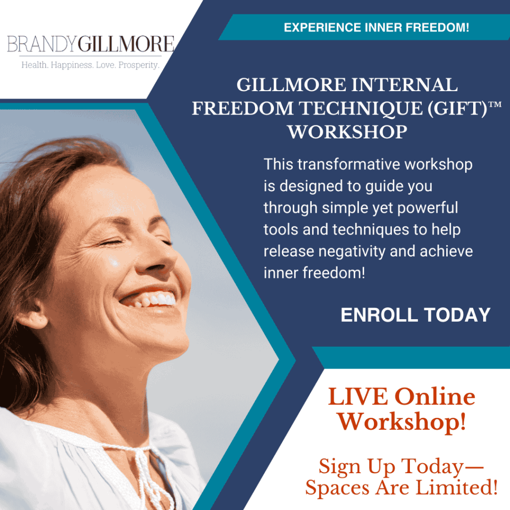 Brandy Gillmore’s journey to healing herself required more than just understanding the process—it led her to develop unique tools and techniques to work with the mind, body, and energy in a way that made all the difference. After successfully healing herself in 2010, she began teaching a series of workshops, which later became known as the Gillmore Internal Freedom Techniques (GIFT)™ Workshop.